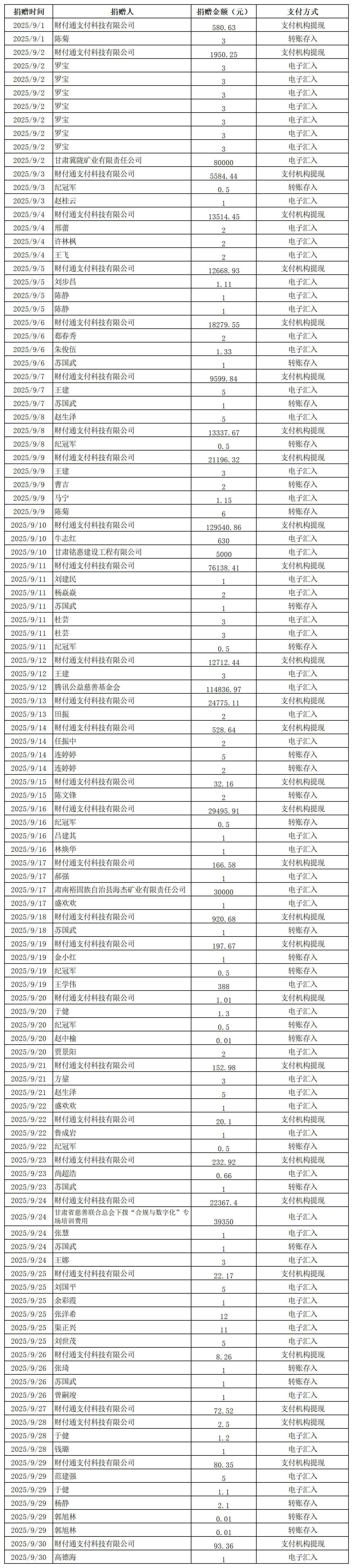 2025年張掖市慈善協(xié)會(huì)捐贈(zèng)光榮榜(五)(銀行轉(zhuǎn)賬收入)
